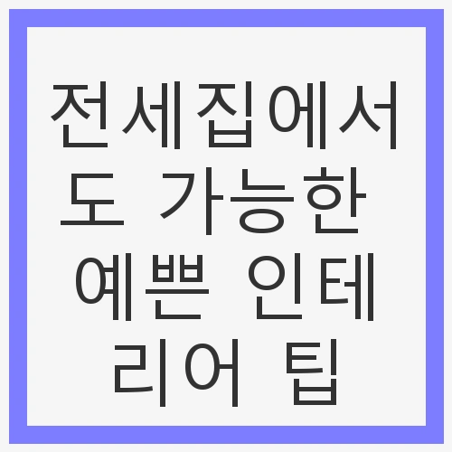 전세집에서도 가능한 예쁜 인테리어 팁을 통해 여러분의 집을 더욱 아늑하고 아름답게 꾸며보세요. 작은 변화가 큰 만족을 가져다줄 것입니다. 다양한 방법을 활용하여 나만의 스타일로 집을 꾸미는 즐거움을 누리시길 바랍니다.