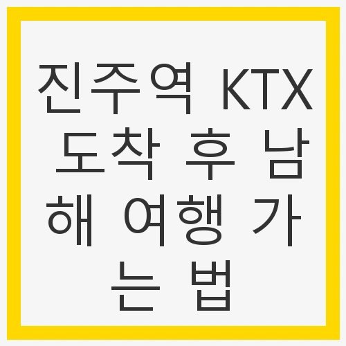 진주역 KTX 도착 후 남해 여행 가는 법에 대해 이야기해볼까요? 특히 봄철 여행을 계획하는 분들이라면 벚꽃과 아름다운 풍경을 만끽할 수 있는 남해는 최적의 장소입니다. 진주에서 출발해 KTX를 이용하여 편리하게 여행할 수 있는 방법을 소개하겠습니다. 더불어 남해의 매력적인 관광지와 맛있는 음식, 그리고 편안한 일정으로 당일치기 여행을 즐기는 법까지 자세히 안내해드리겠습니다.