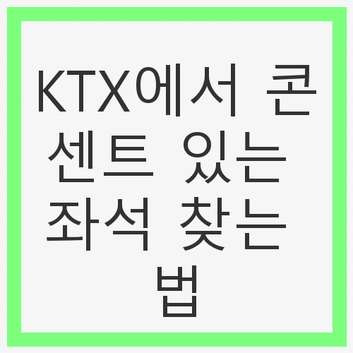 KTX에서 콘센트가 있는 좌석을 찾는 방법은 여러 가지가 있습니다. 가장 간단한 방법은 기차 예약 시 좌석 옵션을 선택하는 것입니다. 코레일 앱에서는 좌석 선택 화면에서 콘센트가 있는 좌석을 별도로 표시해주기 때문에, 이를 참고하여 예약하면 됩니다. 일반적으로 창가 쪽 자리는 콘센트가 없는 경우가 많기 때문에, 중간이나 통로 쪽 좌석을 선택하는 것이 좋습니다.