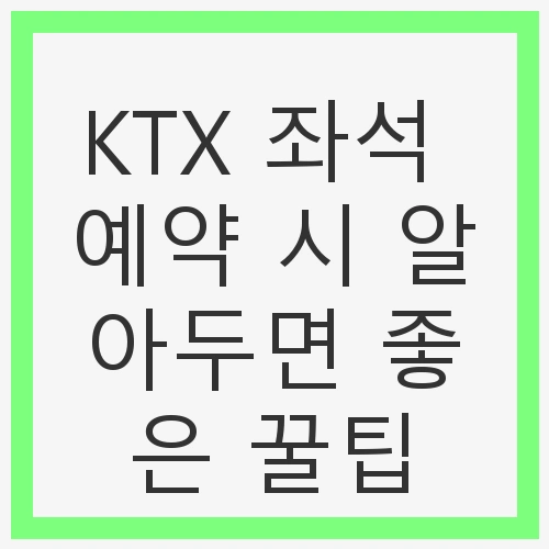 안녕하세요! 여행을 계획할 때 KTX를 이용하시는 분들이 많으실 텐데요. 이번 글에서는 KTX 좌석 예약 시 유용한 꿀팁들을 소개해 드리려고 합니다. KTX는 빠르고 편리한 이동 수단이지만, 좌석 선택이나 예약 방법에 따라 여행의 질이 달라질 수 있습니다. 특히충전기 자리와 명당 좌석에 대한 정보는 많은 분들이 궁금해 하실 것 같아요. 지금부터 KTX를 더욱 편리하게 이용할 수 있는 방법을 알아보겠습니다.